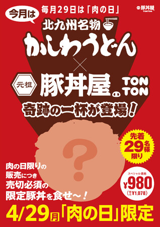4月29日(月)は北九州名物かしわうどんとのコラボ限定メニューを先着29名さま限りで提供いたします。