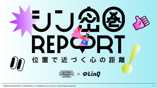 株式会社博報堂、博報堂DYグループの株式会社 SIGNING は、生活者発想で経営を考える研究開発・社会実装プロジェクト「HAKUHODO HUMANOMICS STUDIO」の活動の第四弾として、1,500万以上DLされている位置情報共有サービス「whoo your world」を運営する株式会社LinQを共同研究パートナーとして「シン密圏プロジェクト」を発足し、本日レポートを発表しましたのでお知らせいたします。
