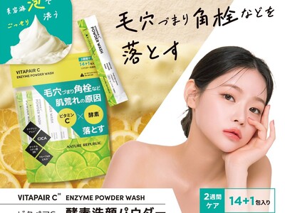 株式会社ネイチャーリパブリックジャパン(所在地:東京都港区浜松町)は、人気の「ビタペアC」シリーズより毛穴づまり・角栓などを美容液泡でごっそり洗う「ビタペアC酵素洗顔パウダー」を2024年6月1日(土)より順次発売いたします。パパイン酵素*が毛穴の黒ずみやざらつきのもととなる古い角質をマイルドに洗い上げ、ビタペアCならではの美容成分で保湿ケアします。本商品は先行発売として全国のPLAZA・MINiPLA(一部店舗を除く)にて4月29日(月)より順次販売いたします。