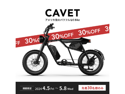 MOVE株式会社(本社:東京都墨田区、代表取締役:冨田大揮)は、米国の先進電動自転車メーカーAspadz社と業務提携を締結し、同社の電動自転車ブランドCAVETの日本国内における総代理店となりましたことをお知らせいたします。また、MOVE限定モデルとしてCAVET - ALL BLACKを30台限定で30%OFFにて発売開始します。