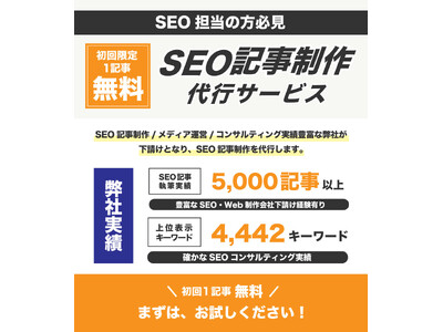 SEOコンサルティング業を営む株式会社トビバコ(東京都大田区・代表取締役 相川賢太郎)は、SEOにおける記事品質の重要性が高まる中、SEO業者やWeb制作会社向けに特化した「SEO記事制作代行サービス」がスタート。SEOディレクターやSEO担当者が抱える課題を解決するサービスです。初回限定で1記事無料で提供いたします。