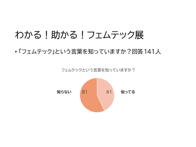 展示エリアでは、来場者にパネルアンケートを実施し、「『フェムテック』という言葉を知っていますか?」、「普段、女性としての困りごとは?」、「今の職場は女性への理解があると思いますか?」等の質問に対して、 現時点での和歌山の生活者における「フェムテック」という言葉の認知度、また、女性がよりよく社会で活躍するために取り組むべき健康課題、職場の理解度を本イベントを通じて、可視化しました。