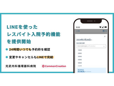コモン・クリエーション株式会社は、光武内科循環器科病院(以下、光武病院)と協業し、医療・介護従事者向けLINE公式アカウント「光武内科循環器科病院」を開設し、レスパイト入院の予約管理を効率化する「レスパイト入院予約機能」の提供を2024年5月1日より開始いたします。