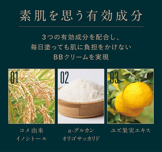 肌負担を最小限に肌負担を最小限にするため、3つの有効成分を配合。毎日塗っても罪悪感のないBBクリームを実現しました。