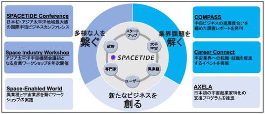 一般社団法人SPACETIDEは、2015年から「日本および世界の新たな宇宙産業の発展」をビジョンに掲げ、産業横断的な取り組みを通じて宇宙ビジネス全体の底上げを図り、新たな宇宙ビジネスの道筋を創り出すために活動している団体です。2015年から毎年、日本発の国際宇宙ビジネスカンファレンス「SPACETIDE」を主催しています。