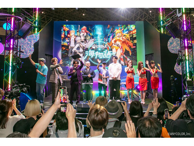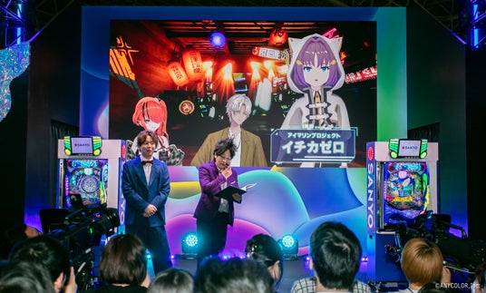 「にじさんじ vs SANYO 最強海物語チーム決定戦」の2nd STAGEが始まろうとした瞬間、新章アイマリンプロジェクトのキャラクター、イチカゼロ(CV:佐伯伊織)がステージをジャックする形で登場。MC「ぺこぱ」さんや、にじさんじとのやりとりの後、最新楽曲「Frustration」のMVがお披露目されました。「Frustration」は “怒り”をテーマにしたロックテイストあふれる楽曲で、MVではライブハウスを舞台に、アイマリン(CV:内田彩)とイチカゼロが激しいパフォーマンスを披露しています。MVお披露目後には【公式】アイマリンプロジェクトのYouTubeチャンネルで配信を開始したほか、VRChat内でニコニコ超会議後夜祭_CLUB深海(DJイベント)も開催し、大きな盛り上がりを見せていました。