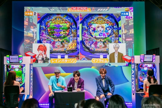 2日間通して行われたメインステージは、大人気VTuber / バーチャルライバーグループ「にじさんじ」からレイン・パターソンさん、イブラヒムさん(27日のみ)、伏見ガクさん(28日のみ)を迎えて行ったパチンコ対決。10代目ミスマリンちゃん率いるSANYOチームには「ぺこぱ」のシュウペイさんが加勢。さらに終盤では「大工の源さん」が緊急参戦し、会場には大きな歓声が沸き起こりました。
