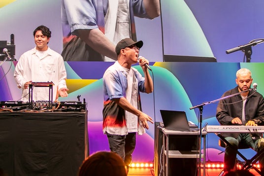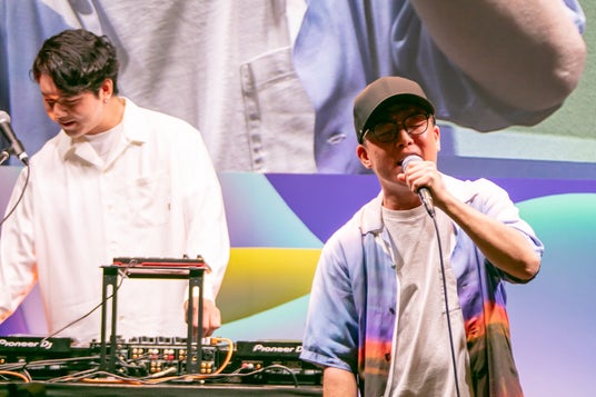 【DAY2】4月28日(日)の大トリを飾ったのが、著名アーティストに多数の楽曲提供を行う音楽プロデューサー兼アーティストのMatt CabさんとMATZさん、若い世代を中心にSNSでも大人気のずま(虹色侍)さんという、豪華クリエイター陣によるSpecial LIVE。海物語のサウンドをサンプリングしたコラボ楽曲「もう1回!」、海物語シリーズのテーマソング「Go!Go! SEA STORY」のほか、来場者から募集したお題を元にその場で曲をつくる得意の即興を披露。来場者だけでなく通りすがりの人も足を止めるなど、多くの人たちがそのクオリティの高い演奏に聞き入っていました。