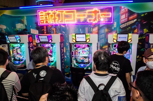 ステージ前には開場から多くの観客が集まり、応援グッズを身に着けたにじさんじファンも大勢駆けつけました。パチンコライター「ドテチン」さんのわかりやすい解説と、海物語シリーズのシンプルなゲームフローも相まって、対決中盤からはパチンコ未経験の来場者も魚群が流れるたびに前のめりになって観戦する姿が多く見られました。