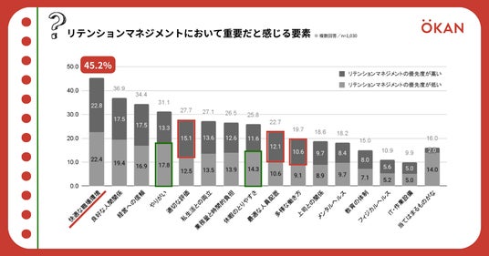 経営者がリテンションマネジメントにおいて重要だと感じる要素を尋ねたところ、