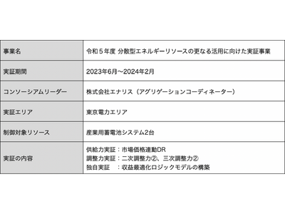 株式会社Sassor(本社:東京都目黒区、代表取締役:石橋秀一)は、この度、「令和5年度 分散型エネルギーリソースの更なる活用に向けた実証事業」(以下、本実証事業)にリソースアグリゲータとして参画したレジル株式会社(本社:東京都千代田区、代表取締役:丹治保積)と産業用蓄電池システムを活用した実証事業を行いました。