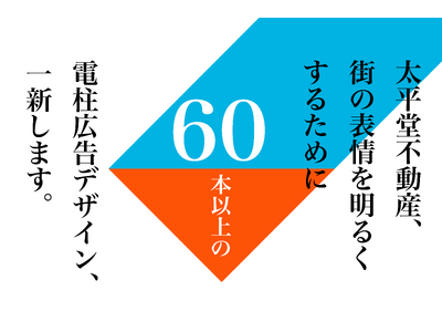 山形県山形市に本社を持ち企業パーパス「山形を継ぐ。」を掲げる総合不動産企業 株式会社太平堂不動産(以下、当社)は、見た人に自分たちが住まう地域やその土地の不動産に関心と愛着を抱いてもらうことを目的に、山形市及び近隣エリアに点在する自社電柱広告を新デザインに一新します。このデザイン変更は、当社が所有する管理物件の看板や各種街頭広告のデザインを今の時代に合わせて更新していく「Lighting Up Project by TAIHEIDO」の一環として行われます。