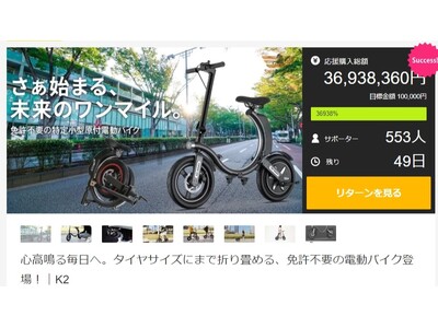 Makuake 開始初日に総応援金額1000万円突破!3段階の折り畳みでキャリーケースのように持ち運べる電動バイク「SWIFT HORSE K2」が最大29%OFFで7月9日まで実施