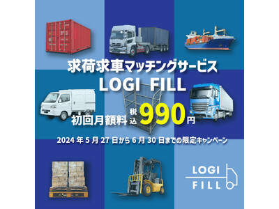本キャンペーン期間中に「LOGIFILL」の有料プランへご入会いただきますと、初月のご利用料金が990円(税込)となります。また、ご入会いただいた日から一ヶ月以内に荷物または空きトラックの案件をご登録いただいた方は、初月990円(税込)を無料といたします。