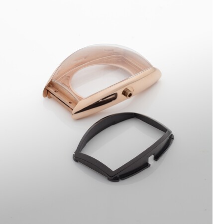 グランド カーベックスは、ケースのデザインを内部構造から大幅に見直しています。ベゼル部をケースから独立させ、ガラスとケースの内側に内包しています。この“INNER CURVEX”(インナー カーベックス)とよばれる内側のケースを異なる素材で組み合わせることで、美しいバイカラーのケーシングを可能にしています。