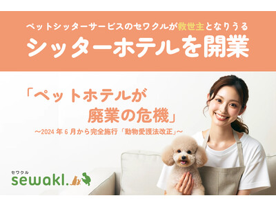 ご家庭にプロのペットシッターを派遣し、飼い主不在時のペットのお世話やお散歩の代行を行うサービス「セワクル」を運営する株式会社ラニマル(本社 : 東京都港区、代表取締役 : クレーン 淳、設立:2021年5月)は、2024年6月に完全施行される「動物愛護法」の改正に伴い、6月1日からシッターの自宅でペットをお預かりするサービス「セワクルシッターホテル」を開始することを公表いたします。