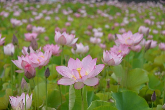 この蓮畑の見どころは、早朝の美しい光の中で花が開く瞬間です。朝の涼しい時間帯に訪れると、しっとりとした雰囲気の中で蓮の花を楽しむことができます。また、蓮畑の周辺には散策路が整備されており、ゆっくりと散歩しながら花を鑑賞するのもおすすめです。