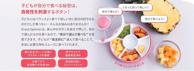 その想いをエンジニアである夫のジョセフに相談し、試行錯誤を繰り返し完成させたのが、GoBe Snack Spinner です。