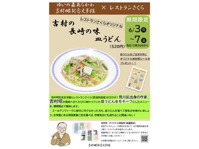「吉村昭記念文学館」と「レストランさくら(荒川区役所食堂)」のコラボレーション企画!荒川区出身の作家、吉村昭が長崎へ行くたびに味わっていた皿うどんをモチーフに、レストランさくらオリジナル「吉村の長崎の味皿うどん」を期間限定メニューとして提供します。