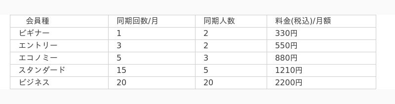 各会員の違いは同期機能ができる回数と人数の違いです。