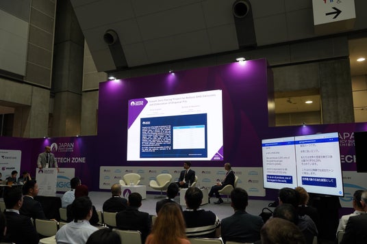 東京ビックサイトにて2024年6月3日から6月5日で開催された「Japan Energy Summit 2024」のセミナー会場にて、サービスを使用する様子。