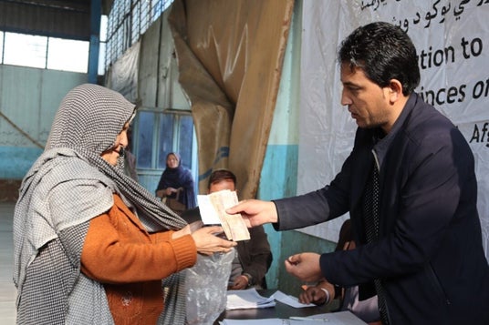 現金給付支援を受け取る女性