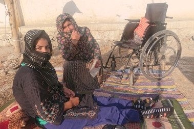 銃により負傷し、障がいのある女性(左)。母親は未亡人であり、女性の就労や外出が制限されるなか家族に男性はいない