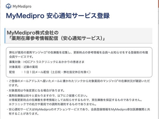 MyMedipro株式会社の「薬剤在庫参考情報配信(安心通知サービス)」