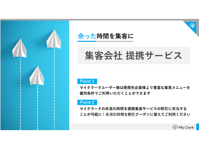 会員向け集客優待サービス『集客会社提携サービス』を開始。マイクラークの利用時間を集客サービスの優待に充当が可能に。会員の業績向上にも貢献へ
