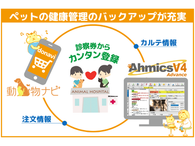 このたびの開発では、森久保CAメディカルのWEBショップ「動物ナビ」とペットコミュニケーションズの電子カルテ「AhmicsV4 Advance」を連携します。