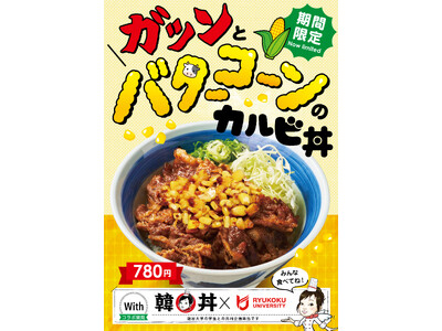 株式会社やる気(所在地:京都市伏見区北端町60番地、代表取締役 大島幸士)は、龍谷大学の加藤ゼミと産学連携で共同開発した「ガツンとバターコーンのカルビ丼」を期間限定で発売します。