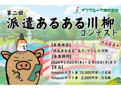 人材派遣サービスを展開するインプルーブ株式会社(本社:大阪府大阪市、代表取締役社⾧:尾張 伸行)が派遣あるあるをテ―マにお送りするYouTube アニメチャンネル「ハケンはつらいよ ~インプる君の東海道中膝栗毛~」では、2024年6月20日(木)より「派遣あるある」をテーマにした「第2回 派遣あるある川柳コンテスト」を開催いたします。
