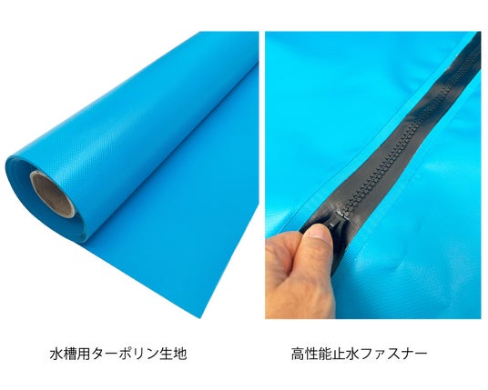 高品質な素材を使用日本製の水槽用ターポリン生地・高性能止水ファスナー採用