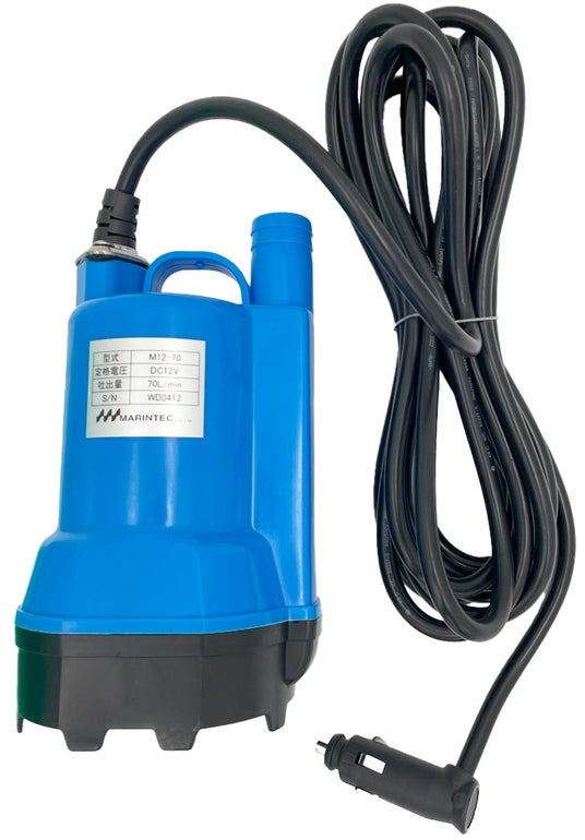 軽トラックのシガーソケット(DC12V)に対応した水中ポンプを付属