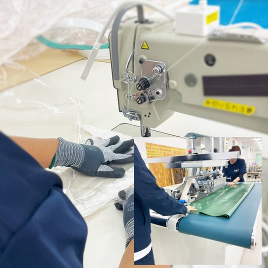 自社工場にて丁寧に縫製貯水タンクは国内自社工場にて、1つ1つ職人が丁寧に製作しています。