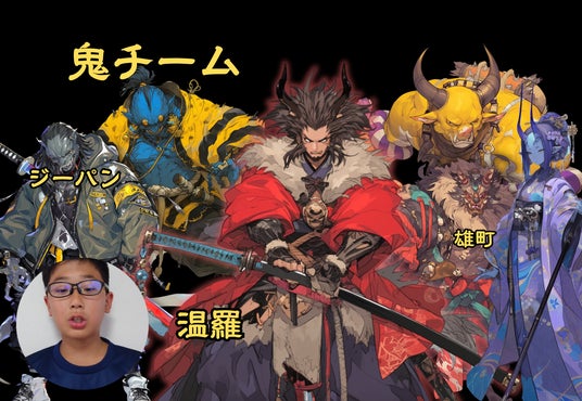AIで作成した、ゲーム内の「桃太郎チーム」イメージ