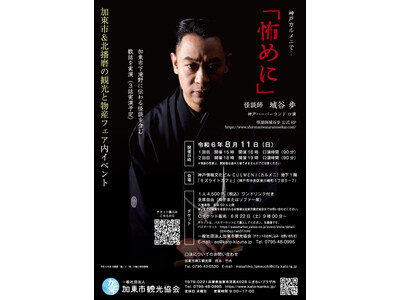 d122852-5-9c6f673ca6521c4bcd308905f648d1d2.pdf加東市&北播磨の観光と物産フェア内イベントとして、怪談師 城谷 歩 氏をお迎えして怪談イベント「怖めに」を神戸ハーバーランド「モズライトカフェ」にて口演します。