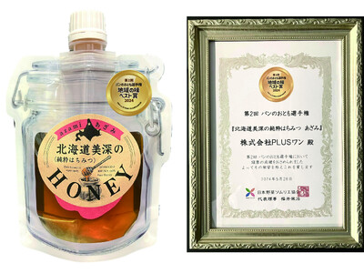 株式会社PLUSワン(本社:札幌市豊平区、代表:範國 完次)は、「北海道美深の純粋はちみつ あざみ」が「第2回パンのおとも選手権」において、地域の味ベスト賞を受賞したことをお知らせいたします。一般社団法人日本野菜ソムリエ協会が主催する「パンのおとも選手権」は、『パンのおとも』日本一を決めるコンテストであり、弊社の製品では初の受賞となります。