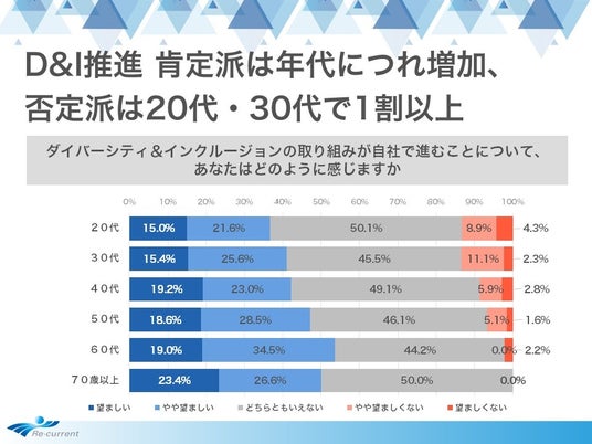 D&I推進 肯定派は年代につれ増加、否定派は20代・30代で1割以上