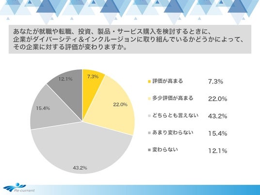D&Iへの関心の高さは人によってバラつきがあり、企業評価への影響はまだ大きくは見られないと言えます。