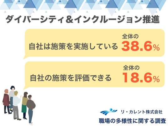 1.D&I推進施策「自社で実施されている」回答者は全体の38.6%2.D&I推進実施企業のうち「施策を評価できる」回答者は半数を切り、全体の2割以下に