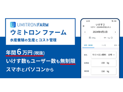 水産養殖事業者向け生産・コスト管理サービス「UMITRON FARM(ウミトロンファーム)」を正式にリリースいたしました。ウミトロンファームに日々の生育データを記録することで、