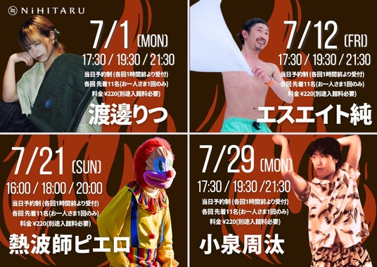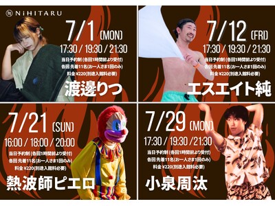 7月もゲストアウフグースイベント4連発。人気アウフグースマスターたちが、NiHITARUのサウナ室にてアツい熱波を送り、様々なパフォーマンスを披露します!