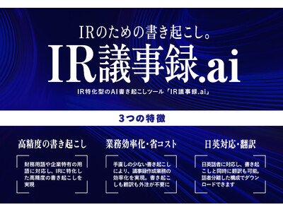 IRコミュニケーションプラットフォーム「みんなの説明会」を運営する株式会社みんせつ(本社:東京都中央区、代表取締役CEO:中安 祐貴、以下 みんせつ)は、IRに特化したAI搭載の書き起こしツール「IR議事録.ai(TM)」の提供を開始いたしました。