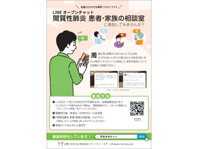 「間質性肺炎 患者・家族の相談室」は、間質性肺炎患者とそのご家族、支援者がご利用いただけるオンラインのコミュニケーションの場で、LINEを利用している方は匿名で無料参加が可能です。