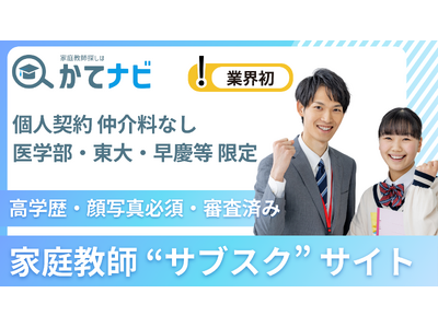 株式会社Y’s educations(本社:東京都港区南青山/代表取締役:吉野裕)の運営する家庭教師個人契約サイト「かてナビ」が6月下旬にリリースされました。