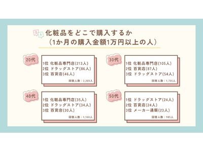 ~化粧品を月に10,000円以上を買う人は20・30代で多い傾向~