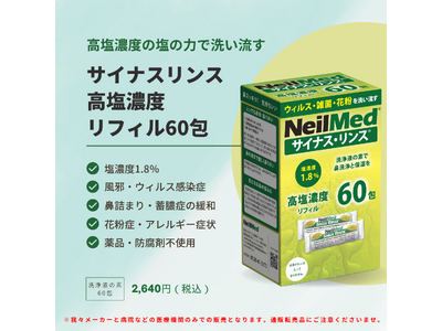 医療機器メーカーのニールメッド株式会社 (所在地:東京都千代田区、代表取締役:唐木 佑介)は、「サイナスリンス 高塩濃度リフィル」を7月1日より発売開始いたします。