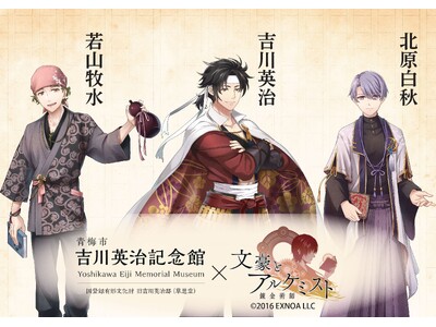 さらに、会期中、吉川英治、北原白秋、若山牧水のキャラクター等身大パネルの設置や「文豪とアルケミスト」のオリジナルグッズの販売を行います。