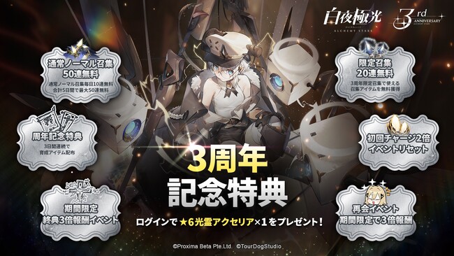 白夜極光3周年イベントの詳細については、公式サイトや公式Xをご覧ください。そして中旬にはさらなるイベントも用意しておりますのでお楽しみに! 『白夜極光』では今後も様々なイベントや企画を準備しています。今後の展開は、ゲームのお知らせや公式SNS(